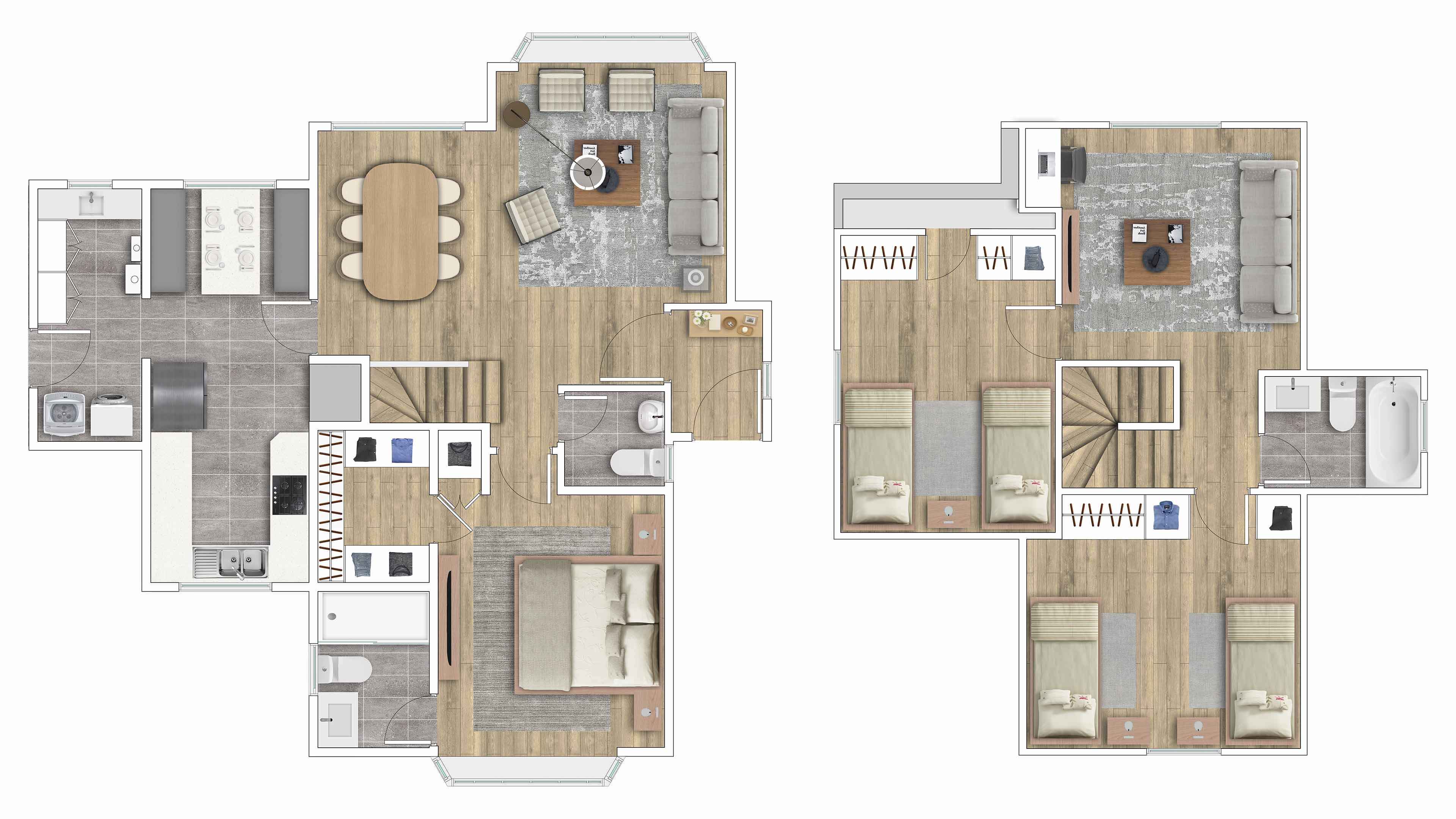 1, 2 y 3 dorms